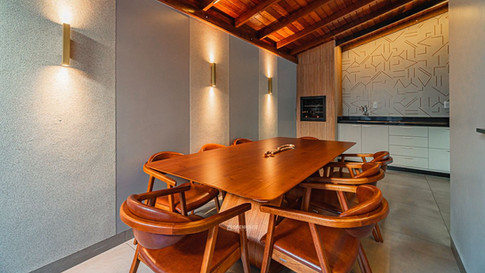 Esta casa integrada combina acolhimento e funcionalidade, com um projeto que valoriza a amplitude e a harmonia entre os espaços. A iluminação indireta e os acabamentos em madeira e tons neutros trazem aconchego, enquanto o layout aberto conecta sala e cozinha de forma fluida e moderna.